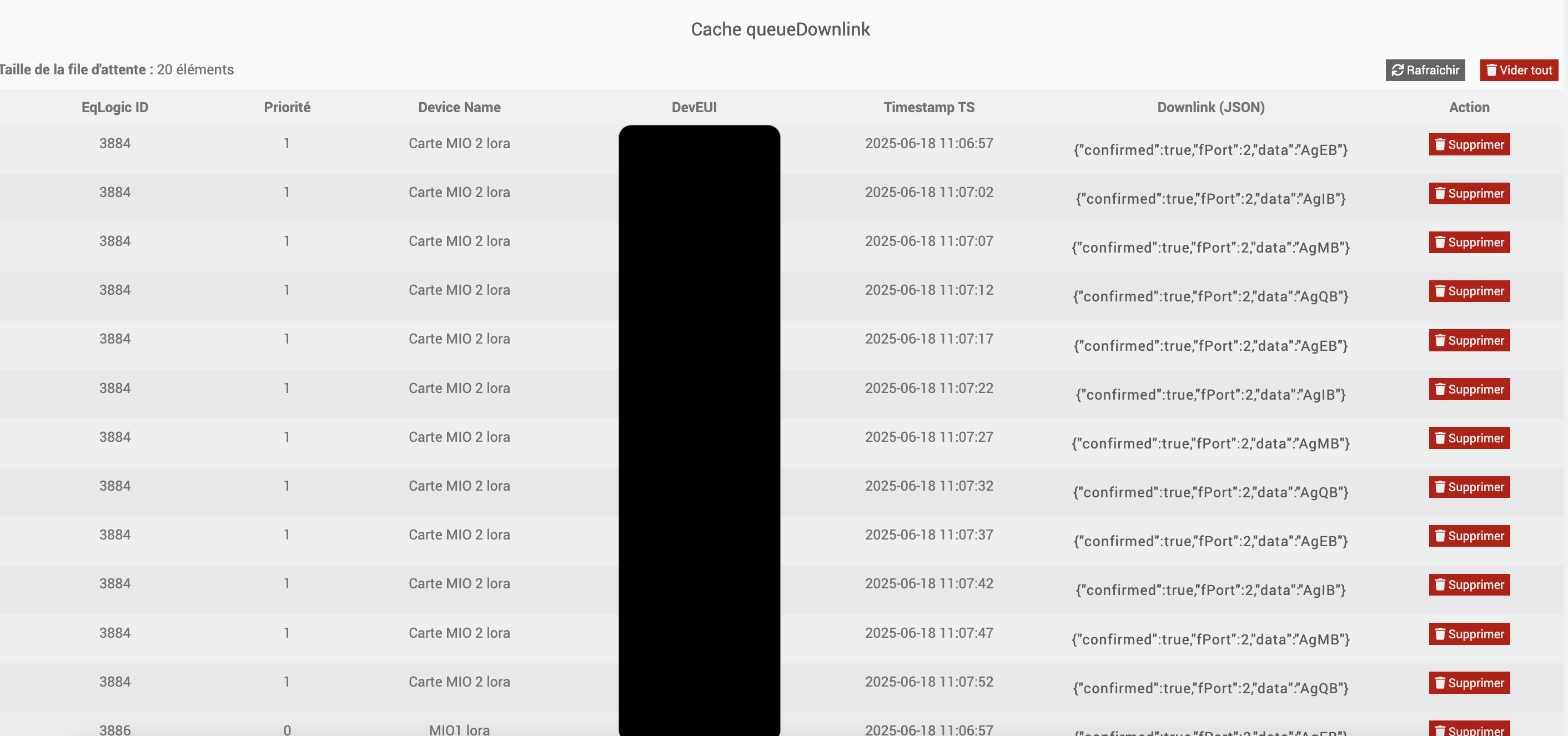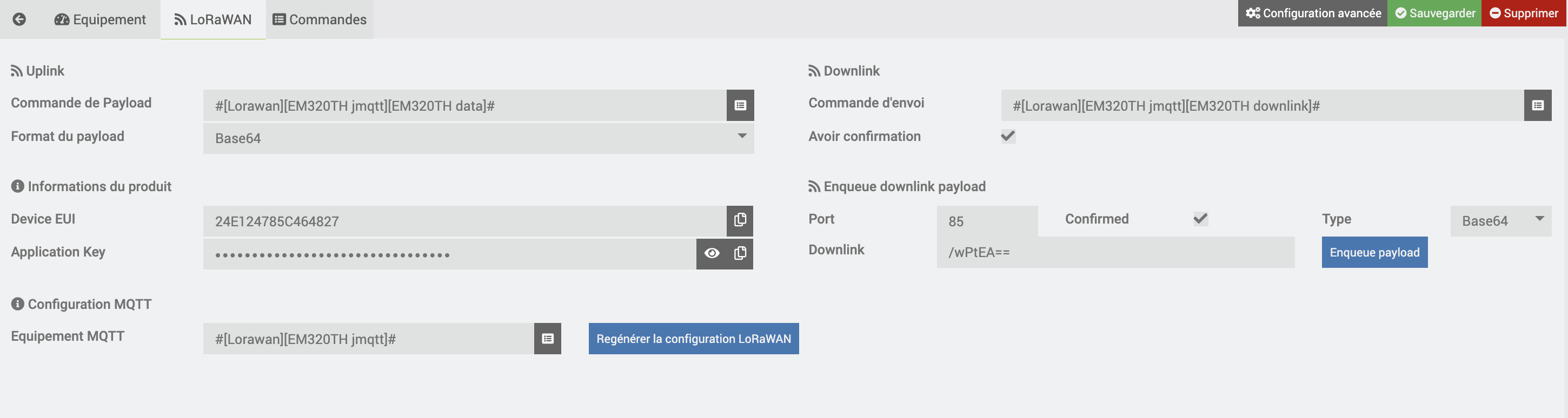 Some Lorawan modules have Action commands which can be used to send instructions to the modules via the Jeedom interface.