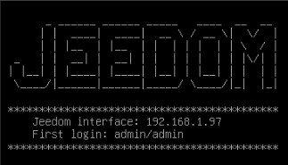 Depuis une image système officielle, tout accès direct à la console affiche immédiatement l’adresse de l’interface Jeedom :